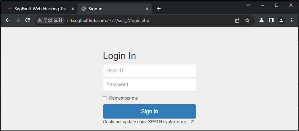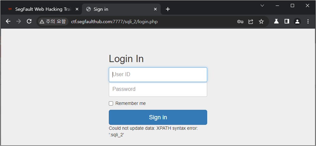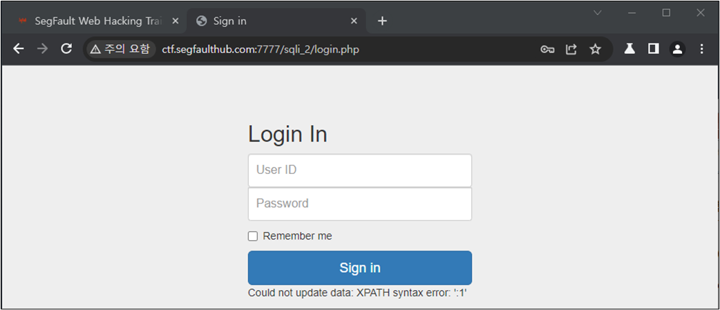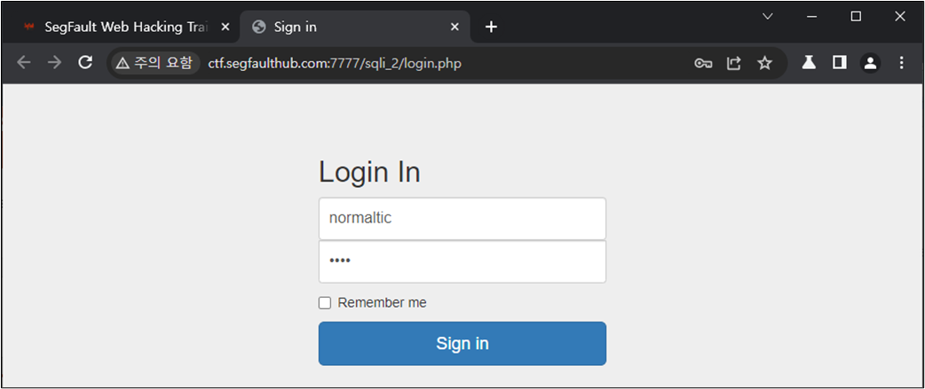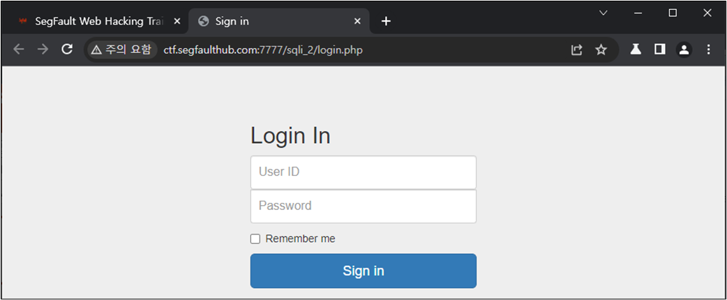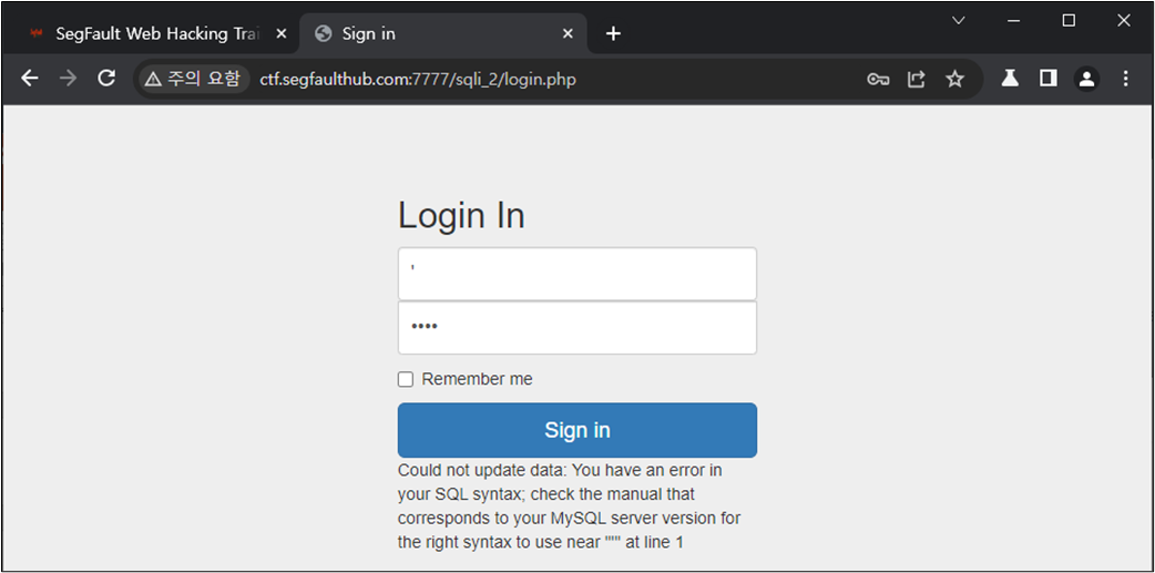 ๊ทธ๋ ๋ค๋ฉด ๋ก๊ทธ์ธ ์ฐฝ์์ SQL Injection์ด ๊ฐ๋ฅํ์ง๋ฅผ ํ์ธํด๋ณด์.