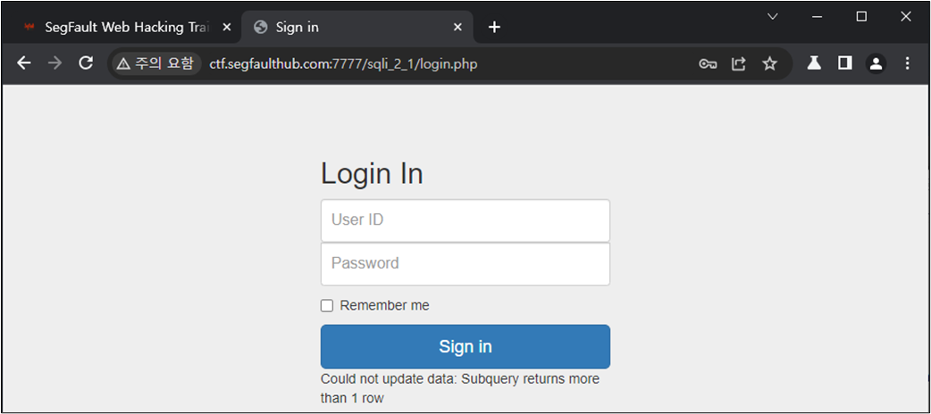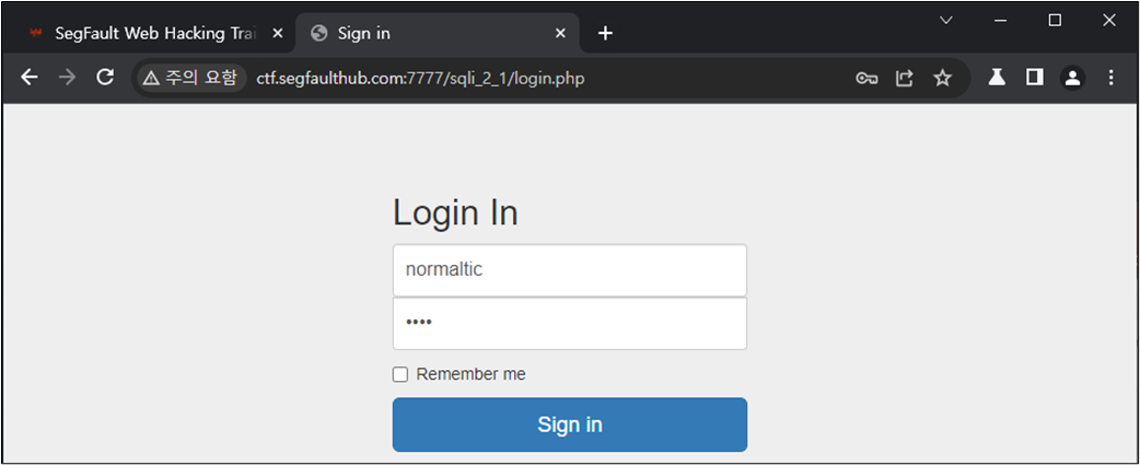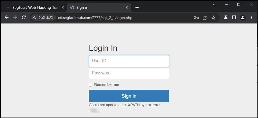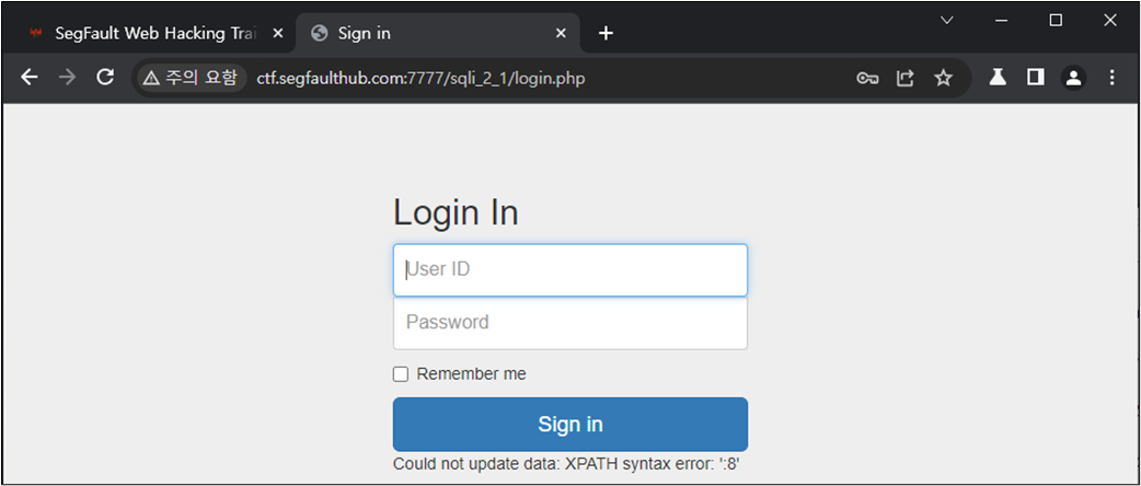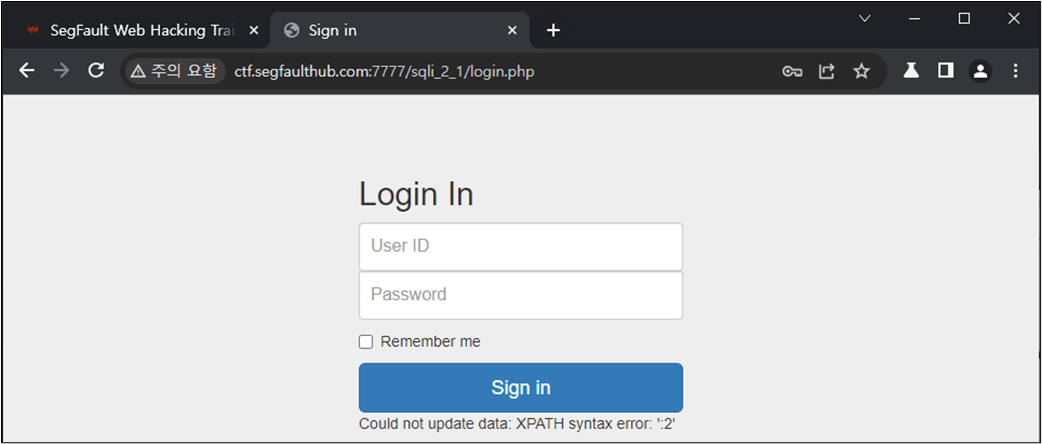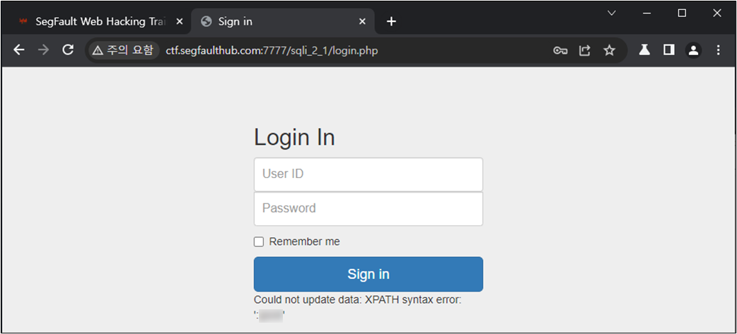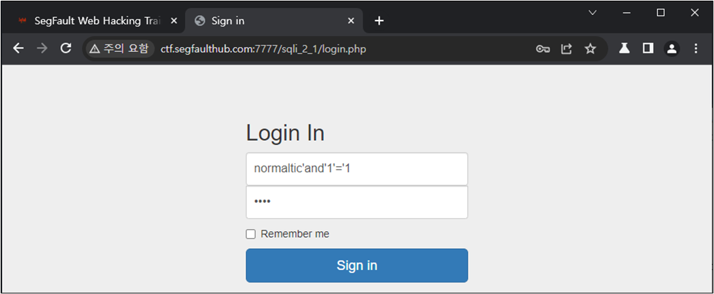 ๊ทธ๋ ๋ค๋ฉด ๋ก๊ทธ์ธ ์ฐฝ์์ SQL Injection์ด ๊ฐ๋ฅํ์ง ํ์ธํด๋ณด์.