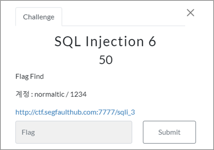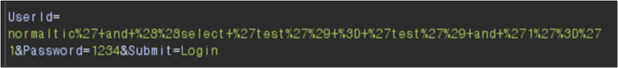 normaltic' and (ascii(substr((__SQL__),๋ฌธ์ ์์น,1)) > ASCII ๊ฐ) and '1'='1