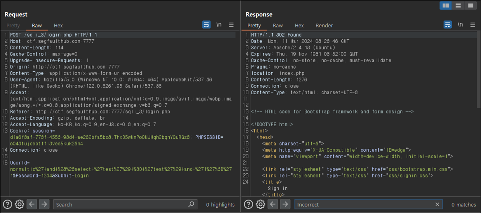 Burp ๋ก ํ์ธํด๋ณด๋ฉด ๋ค์๊ณผ ๊ฐ๋ค.
