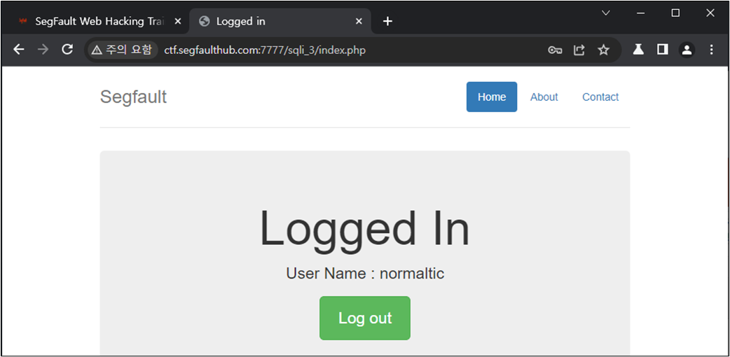 ๊ฒฐ๊ณผ์ ์ผ๋ก Blind SQLi ๋ฅผ ํตํด flag ํ๋์ ์ฑ๊ณตํ์๋ค.