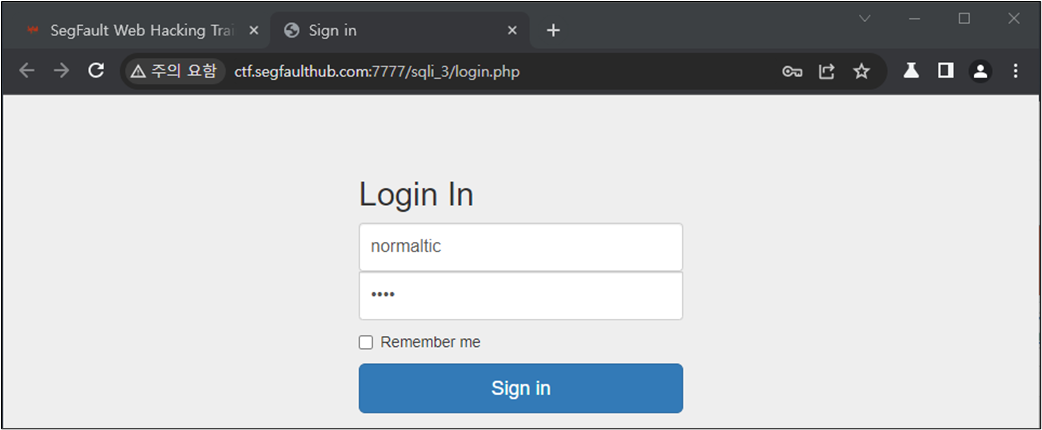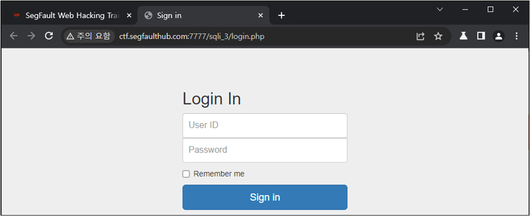 ๊ทธ๋ ๋ค๋ฉด ๋ก๊ทธ์ธ ์ฐฝ์์ SQL Injection์ด ๊ฐ๋ฅํ์ง ํ์ธํด๋ณด์.