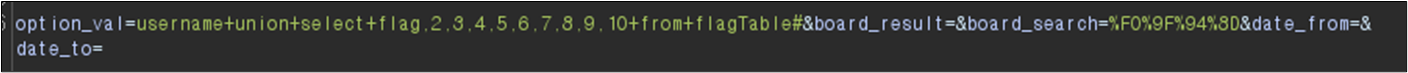 ๊ฒ์ํ์ ๊ฒ์๊ธฐ๋ฅ์ ์ด์ฉํ Union SQL Injection์ด ๊ฐ๋ฅํ ๊ฒ์ ํ์ธํ์๋ค.