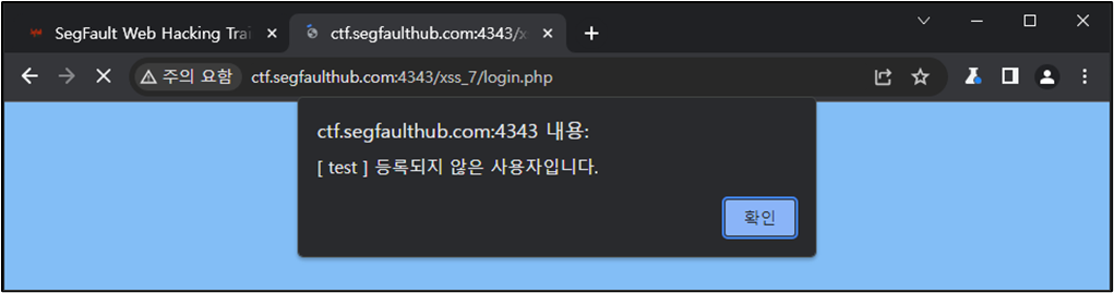 ๋ก๊ทธ์ธ ์ฐฝ์ id ์ ๋ฑ๋ก๋์ง ์์ ์ ๋ณด๋ฅผ ์ ๋ ฅํ ๊ฒฝ์ฐ, ์ ๋ ฅ ๊ฐ์ด ์๋ฆผ์ฐฝ์ ๊ทธ๋๋ก ์ถ๋ ฅ๋๋ ๊ฒ์ ํ์ธํ ์ ์๋ค.
