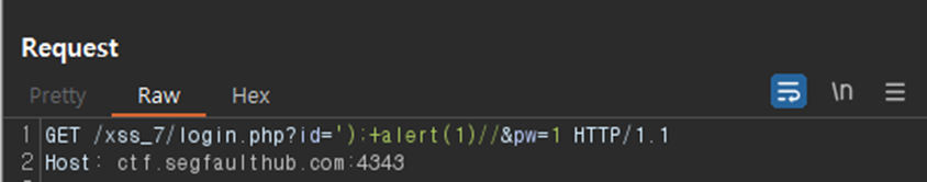 ๋ณธ ๋ฌธ์ ๋ฅผ ํธ๋ ๊ณผ์ ์์ POC๋ก์ alert(1)์ ์ด์ฉํ์ฌ '1'์ ์ถ๋ ฅํ๊ธฐ ์ํด ๋ค์๊ณผ ๊ฐ์ด ์ ๋ ฅํด๋ณด์๋ค.