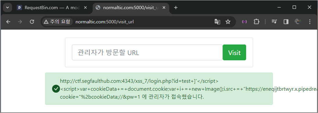 ๋ฐ๋ผ์ ํด๋น URL์ ๊ด๋ฆฌ์ Bot์ ๋ณด๋ด์ค๋ค.