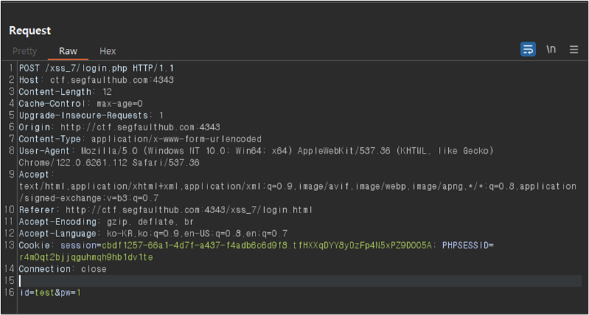 ํ์ง๋ง ํด๋น ๋ฌธ์ ์ ๊ฒฝ์ฐ ํ์ทจํ ์ฟ ํค์ flag๊ฐ์ด ๋ด๊ฒจ ์๋ ๊ฒ์ด ์๋๋ผ, ์ฝ์ ํ๋ ์คํฌ๋ฆฝํธ๋ฅผ 'ํค๋ก๊ฑฐ'๋ก์ ์์ฑํ์ฌ ์ ๋ ฅ๋๋ id์ pw๋ฅผ ์์๋ด์ flag๋ฅผ ์ฐพ๋ ๋ฐฉ์์ด์๋ค๊ณ ํ๋ค. ํ์ง๋ง ์๋์ ๋ ฅ ๊ตฌํ์ด ์์ง ๋์ง ์์ ์ฟ ํค๋ฅผ ํ์ทจํ๋ ๊ฒ ๊น์ง๋ฅผ ๋ชฉํ๋ก ํ์๋ค.