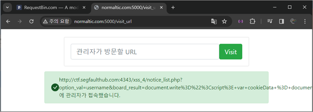 ํด๋น ์์ฒญ์ ๊ฒฝ์ฐ GET Method ์ด๋ฏ๋ก ํด๋น URL์ ๊ด๋ฆฌ์ Bot์ ๋ณด๋ด์ค๋ค.