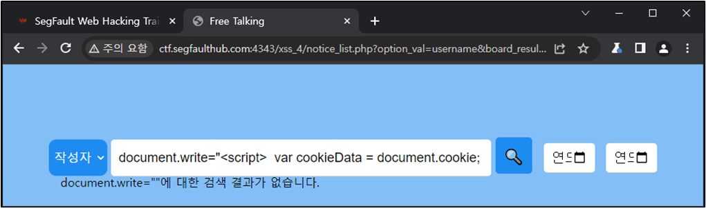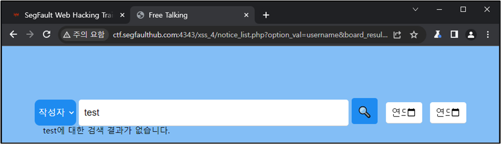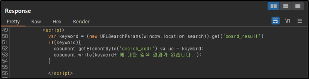 ๋ณธ ๋ฌธ์ ์ ๊ฒฝ์ฐ ๊ฒ์ ๊ธฐ๋ฅ์ ์ ๋ ฅ๊ฐ์ด ํ๋ฉด์ ๊ทธ๋๋ก ๋ ธ์ถ๋๋ ๊ฒ์ ์ด์ฉํ ์ทจ์ฝ์ ์ด๋ค.