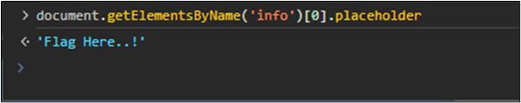 ์์ ๊ฐ์ด ํด๋น ๋ถ๋ถ์ ๊ตฌ์กฐ๋ info๋ผ๋ ์ด๋ฆ์ input ํ๊ทธ์ placeholder ์ด๋ค. ๊ทธ๋ฌ๋ฏ๋ก ์ด๋ฅผ ๋ถ๋ฌ์ค๋ฉด ๋ค์๊ณผ ๊ฐ๋ค.