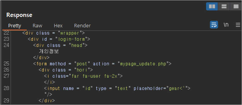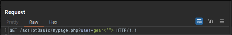 ๋ง์ดํ์ด์ง(Mypage)์ XSS ์ทจ์ฝ์ ์ด ์กด์ฌํ๋ค๊ณ ํ์์ผ๋ก ์ด๋ฅผ ํ์ธํด๋ด์ผํ๋ค. user ํ๋ผ๋ฏธํฐ๊ฐ ํ์ธ๋๋ฏ๋ก ์ด๋ฅผ ๋ณ์กฐ ๊ฐ๋ฅํ์ง ํ์ธํด๋ณธ๋ค. < ' " >๋ฅผ ์ฝ์ ํด์ ํ์ธํด๋ณธ๋ค.