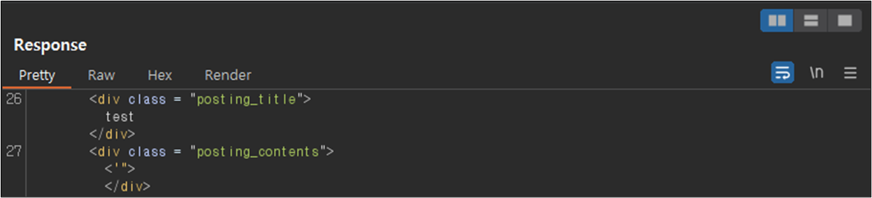 ์๋ต(Response)์ ํ์ธํด๋ณธ ๊ฒฐ๊ณผ ๊ธ์ ๋ด์ฉ ๋ถ๋ถ์์ ์ ๋ ฅ๊ฐ์ด ๊ทธ๋๋ก ์ถ๋ ฅ๋๊ณ ์๋ ๊ฒ์ ํ์ธํ์๋ค.
