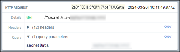 ํ์ทจ๋ ๊ด๋ฆฌ์์ ์ค์ ์ ๋ณด๊ฐ ๊ณต๊ฒฉ์์ ์ฃผ์(RequestBin)์ผ๋ก ๋ฐ์์์ง๋ ๊ฒ์ ํ์ธํ ์ ์๋ค.