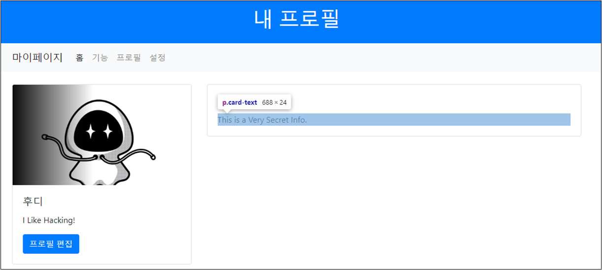 ์ค์ ์ค์์ ๋ณด๊ฐ ์๋ ํ์ด์ง์ card-text๋ฅผ ๊ฐ์ ธ์ค๊ธฐ ์ํ ํ์ด๋ก๋(Payload)๋ฅผ ์์ฑํ๋ค.