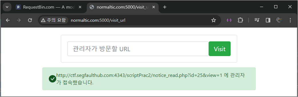 ์์ ๊ธ์ ์ ๊ทผํ๋ URL์ ๊ด๋ฆฌ์ Bot์ ๋ณด๋ด์ค๋ค.