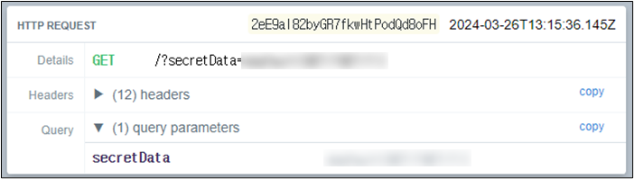 ํ์ทจ๋ ๊ด๋ฆฌ์์ ์ค์ ์ ๋ณด๊ฐ ๊ณต๊ฒฉ์์ ์ฃผ์(RequestBin)์ผ๋ก ๋ฐ์์์ง๋ ๊ฒ์ ํ์ธํ ์ ์๋ค.