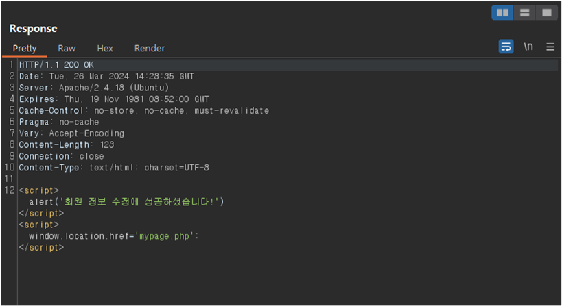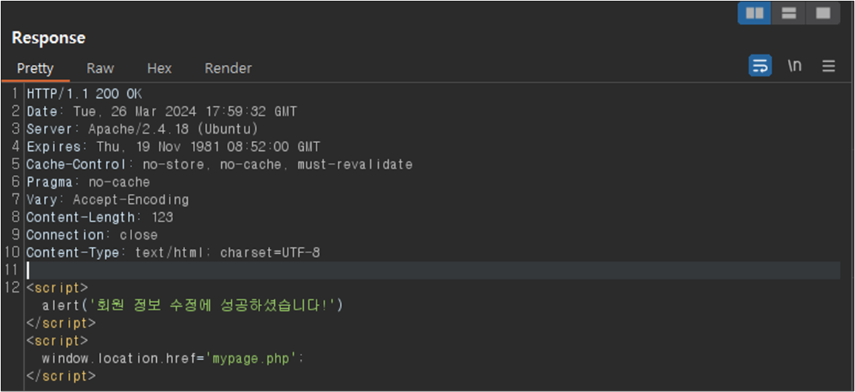 ๋น๋ฐ๋ฒํธ ๋ณ๊ฒฝ ๊ณผ์ ์ ํ์ธํ๊ธฐ ์ํด ๋น๋ฐ๋ฒํธ๋ฅผ ๋ณ๊ฒฝํด๋ณด๊ณ ์ด๋ฅผ Burp๋ฅผ ์ด์ฉํ์ฌ ํ์ธํ๋ค.