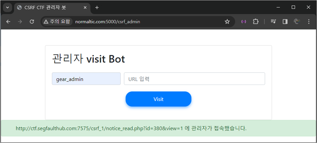 ์ด์ ์์ ๊ธ์ ์ ๊ทผํ๋ URL์ ๊ด๋ฆฌ์ visit Bot์ ๋ฃ์ด์ค๋ค.