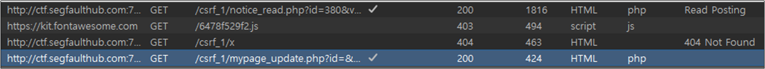 ๋ณธ ๋ฌธ์ ์ ๊ฒฝ์ฐ CSRF ์ทจ์ฝ์ ์ ์ด์ฉํ์ฌ ๋น๋ฐ๋ฒํธ๋ฅผ ์ํ๋ ๋น๋ฐ๋ฒํธ๋ก ๋ณ๊ฒฝํ๋ ์คํฌ๋ฆฝํธ๋ฅผ ์ฝ์ ํ๊ณ , ๊ด๋ฆฌ์ visit Bot์ ํด๋น ๋งํฌ๋ฅผ ์ ๋ ฅํ์ฌ admin ๊ณ์ ์ ๋น๋ฐ๋ฒํธ๋ฅผ ๋ณ๊ฒฝํ์ฌ ํด๋น ๊ณ์ ์ผ๋ก ๋ก๊ทธ์ธํ๋ฉด flag๊ฐ ๋์ค๋๋ก ์ด๋ฃจ์ด์ ธ์๋ค.