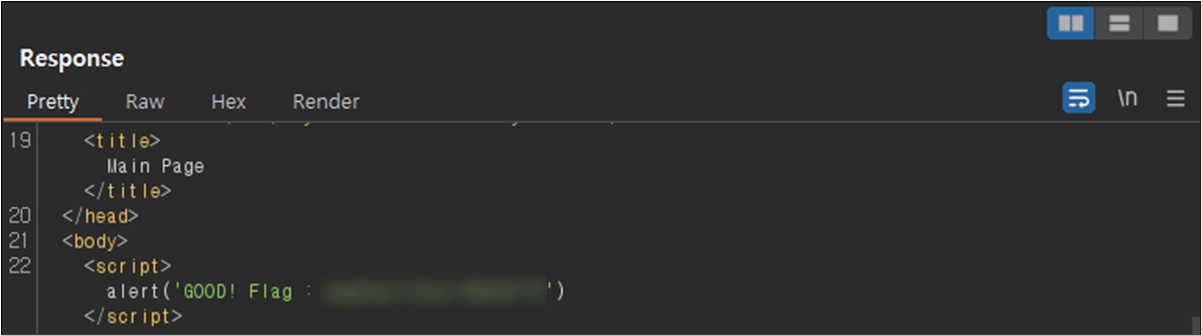 ์คํฌ๋ฆฝํธ๋ก์ ํ์ฑํ ๋์ด ๋ด์ฉ์๋ ์๋ฌด๊ฒ๋ ๋ณด์ด์ง ์์ง๋ง Burp๋ฅผ ํตํด ํ์ธํ๋ฉด ๋ค์๊ณผ ๊ฐ๋ค.