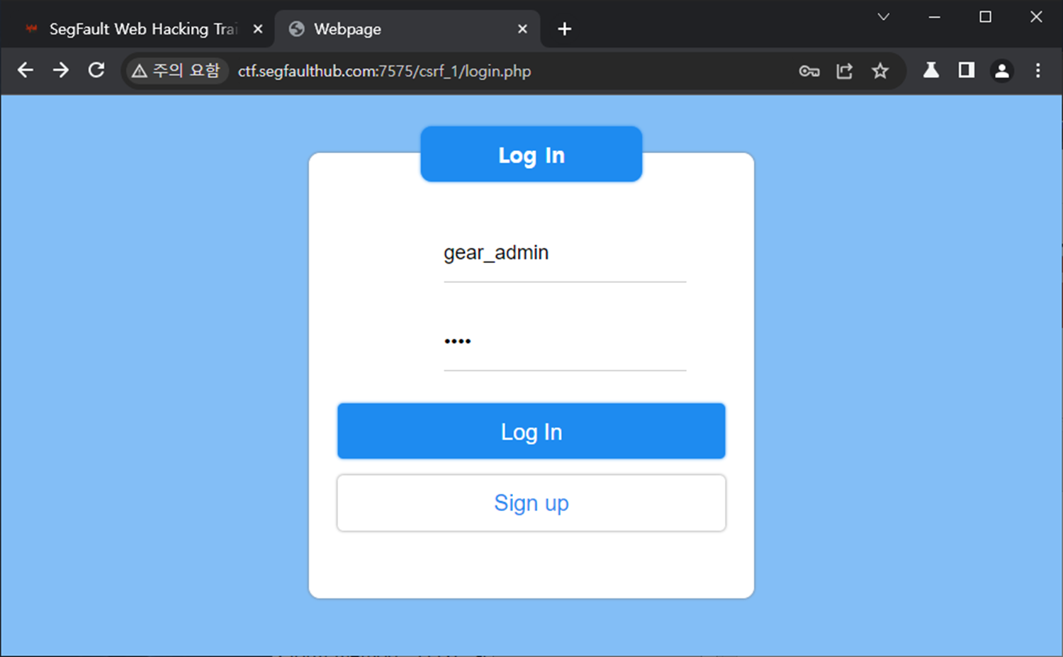 ์ดํ ๋ก๊ทธ์์์ ํ๊ณ ๊ด๋ฆฌ์ ๊ณ์ ์ผ๋ก์ ๋ก๊ทธ์ธ์ ์๋ํ๋ค.