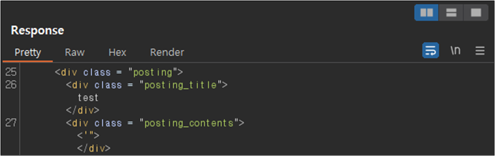 ์๋ต(Response)์ ํ์ธํด๋ณธ ๊ฒฐ๊ณผ ๊ธ์ ๋ด์ฉ ๋ถ๋ถ์์ ์ ๋ ฅ ๊ฐ์ด ๊ทธ๋๋ก ์ถ๋ ฅ๋๊ณ ์๋ ๊ฒ์ ํ์ธํ์๋ค.