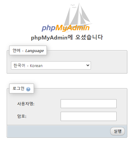 - http://ip์ฃผ์/phpmyadmin : mysql์ ๊ด๋ฆฌ ๊ฐ๋ฅํ ํ์ด์ง์ ์ ์