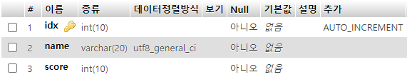 - DB ์ด๋ฆ score -> score_table ์์ฑ