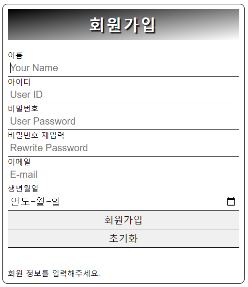 - ํ์ ๊ฐ์ ์ ๋ณด (DB ์ ์ฅ)