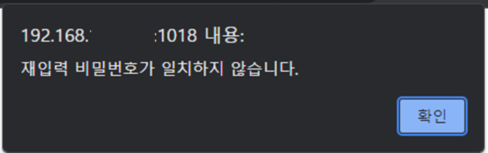 ๋ ฅ ๋น๋ฐ๋ฒํธ๊ฐ ์ผ์นํ์ง ์์ต๋๋ค."); history.back(-1)</script>';
