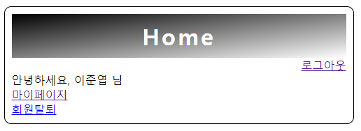 - home.php : ๋ก๊ทธ์ธ ์๋ฃ ํ๋ฉด