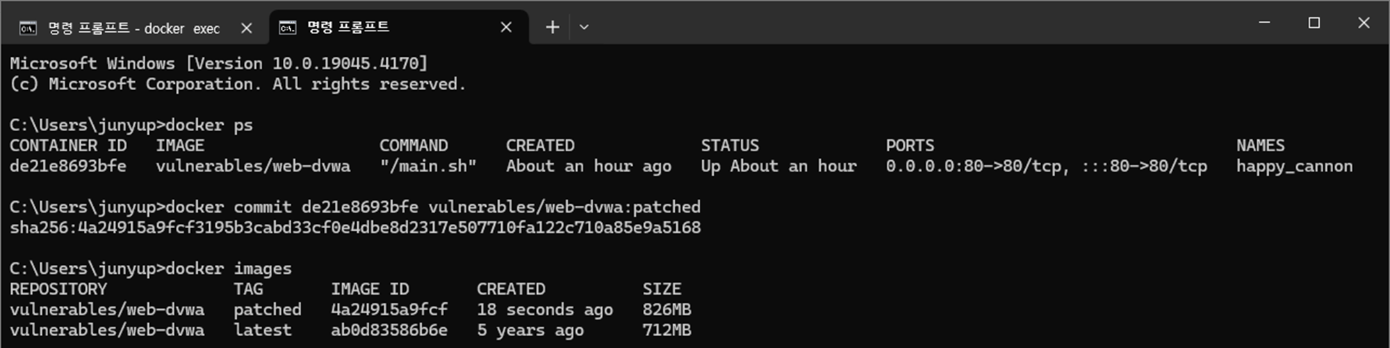 docker commit CONTAINER_ID vulnerables/web-dvwa:patched