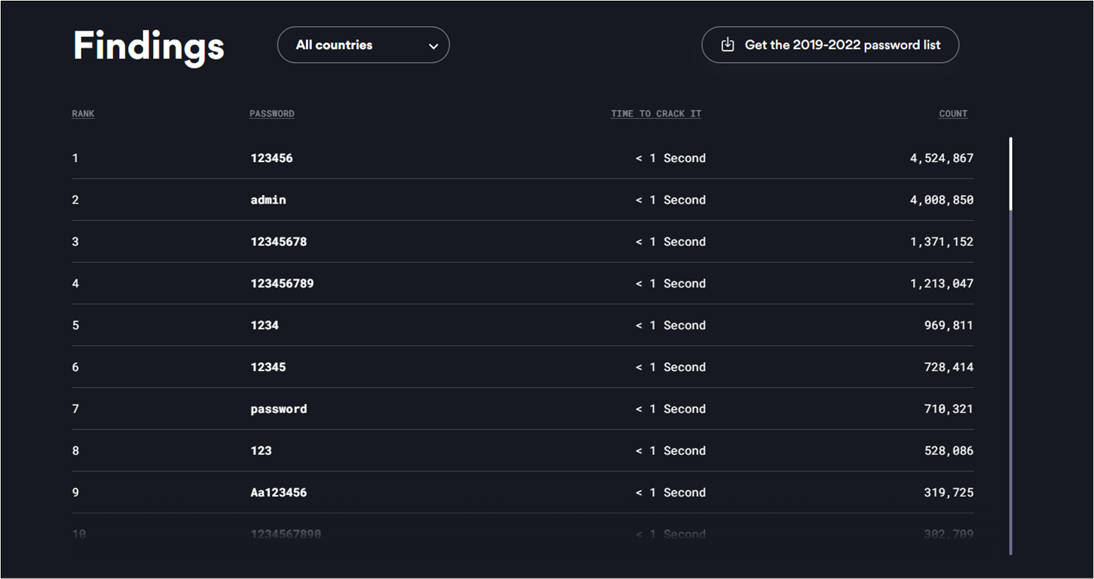 https://nordpass.com/most-common-passwords-list/