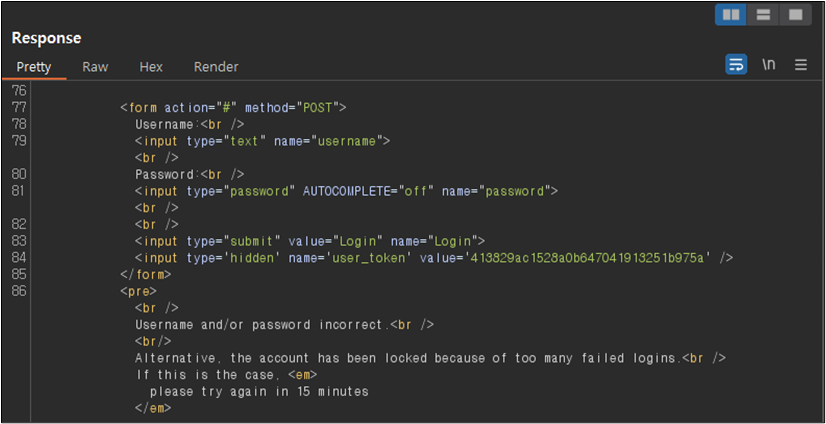 λ°λ©΄ λͺ©λ‘μ ν΄λΉνλ λΉλ°λ²νΈκ° μ‘΄μ¬νμ¬, λ‘κ·ΈμΈμ μ±κ³΅ν κ²½μ° λ€μκ³Ό κ°μ΄ μλ΅(response)μ κΈΈμ΄κ° λ€λ₯Έ κ²μ νμΈν μ μκ³ , μ΄λ₯Ό νμΈν΄λ³΄λ©΄ μ±κ³΅μ μΌλ‘ λ‘κ·ΈμΈ λλ κ²μ νμΈν μ μλ€.