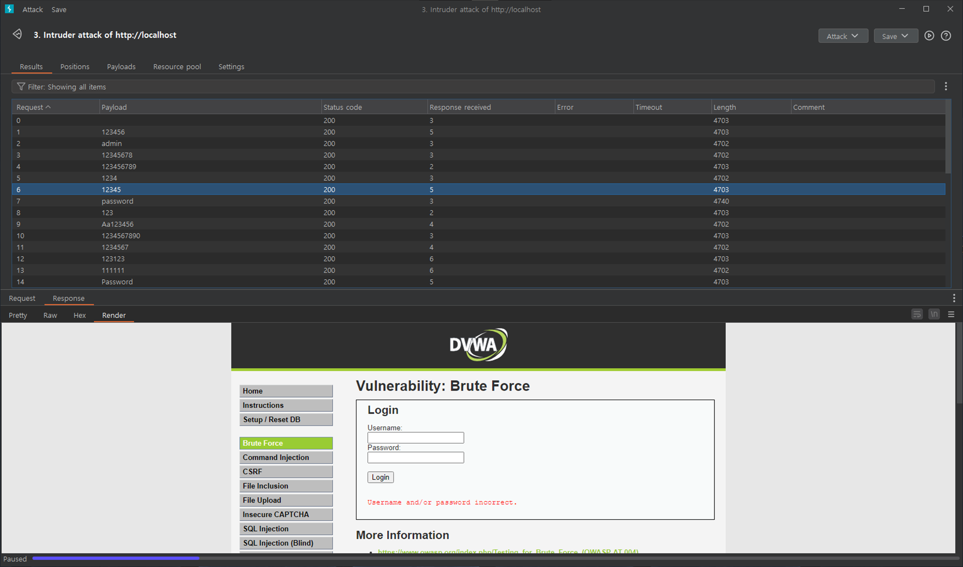 μμ κ²°κ³Όμμ λ³Ό μ μλ―μ΄, Low λ 벨μ κ²½μ° Burp Suiteμ Intruder κΈ°λ₯λ§μ μ΄μ©ν΄λ μ½κ² λ«μ μ μλ κ²μ νμΈν μ μλ€.