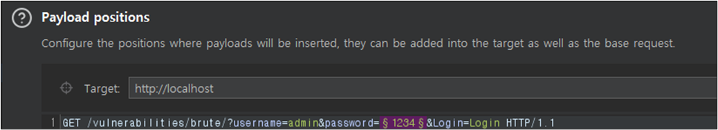 Burp Suiteμ Intruder κΈ°λ₯μ μ΄μ©νμ¬, Paylaod positionμμ λμμ password νλΌλ―Έν°λ‘ μ€μ νλ€.