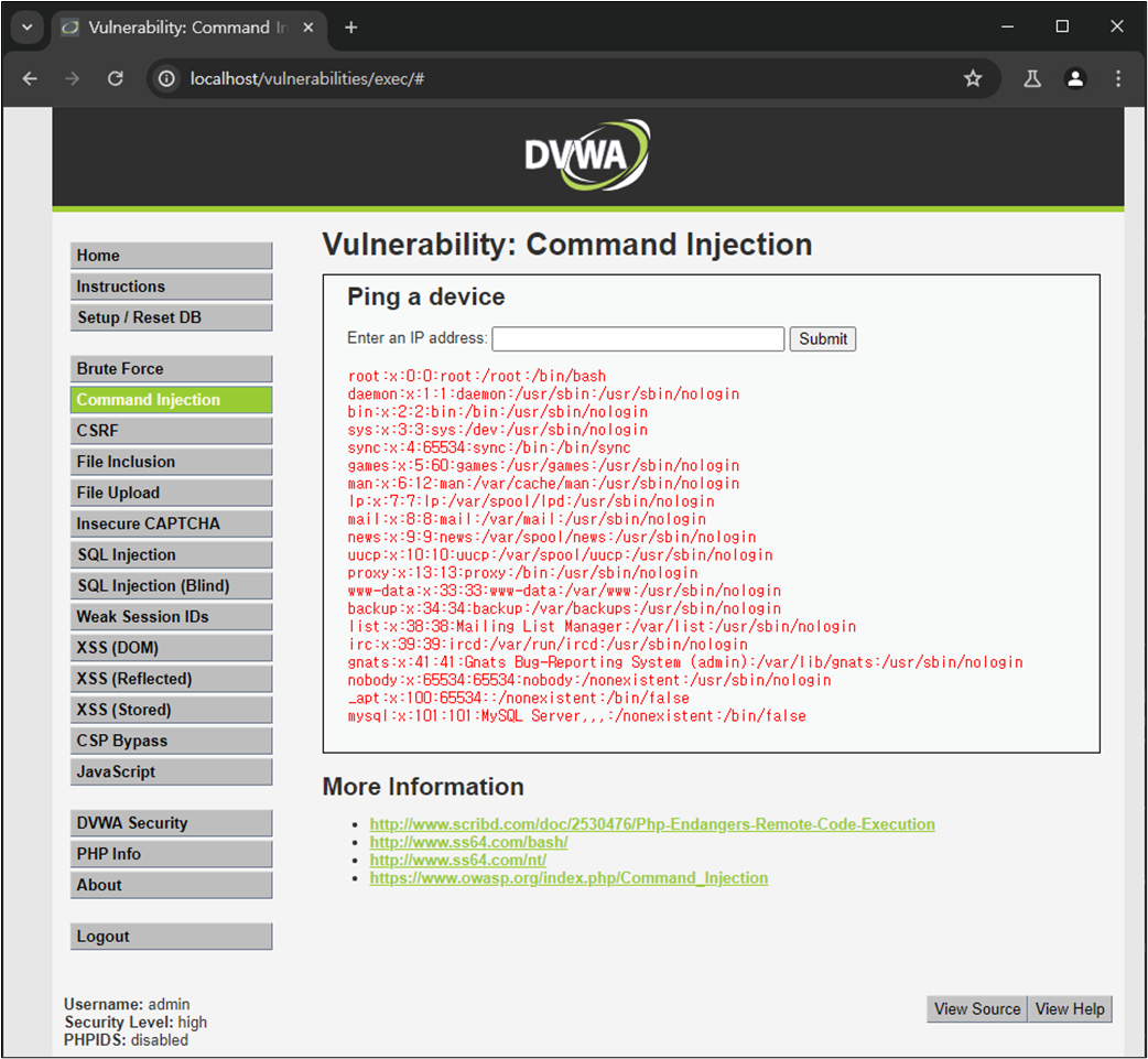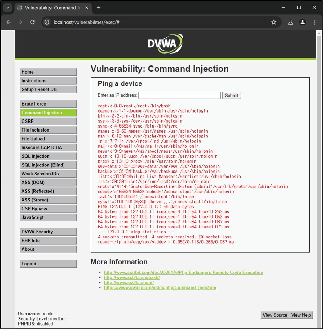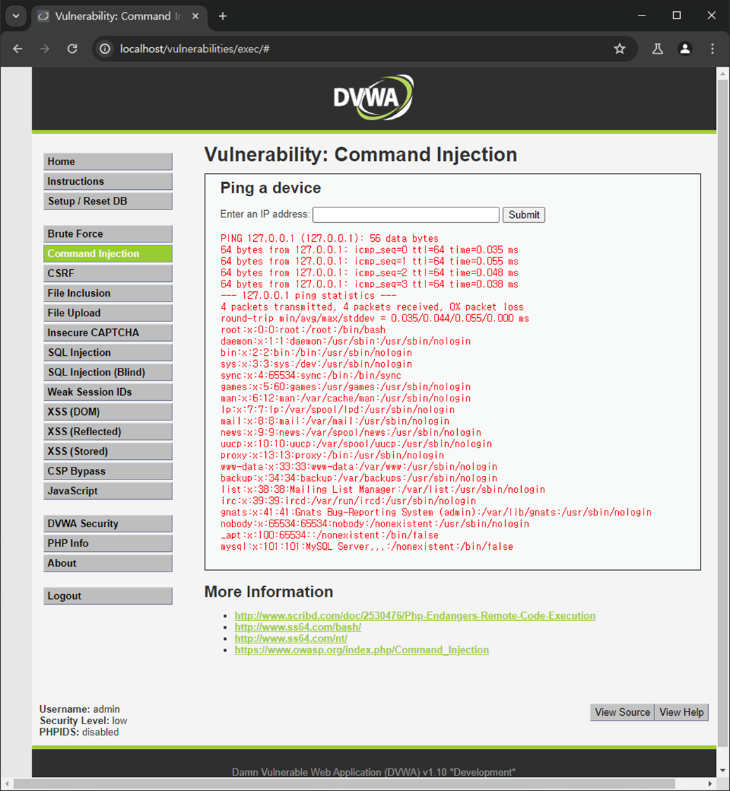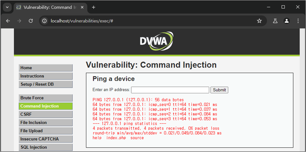 DVWA Command Injection ์ค์ต
