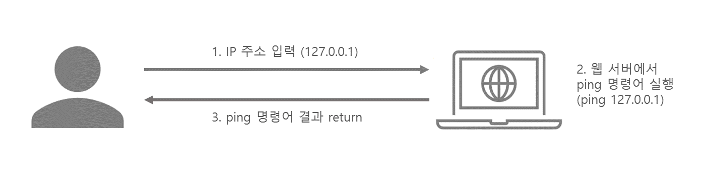 IP ์ฃผ์ ์ ๋ ฅ์ ์๋ ์คํ๋์ด์ผ ํ๋ ping ๋ช ๋ น์ด์, ๊ณต๊ฒฉ์๊ฐ ์ ๋ ฅํ ๋ช ๋ น์ด(command)๊ฐ ๊ฐ์ด ์คํ๋๋ ๊ฒ์ด๋ค.