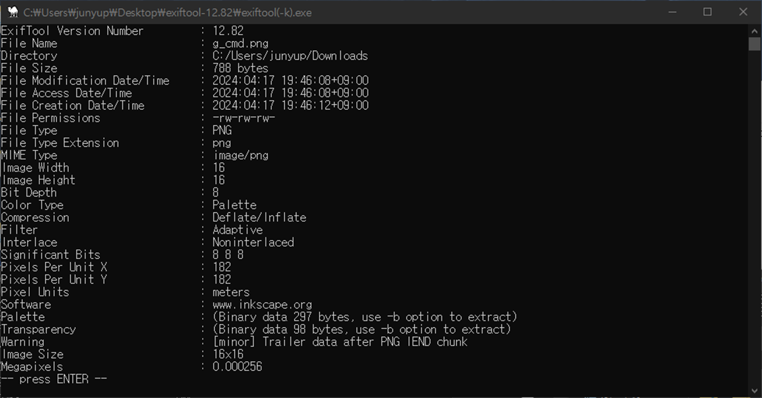 μ°μ μ무κ²λ λ°λμ§ μλ High λ 벨μ μ λ‘λν νμΌκ³Ό μ λ‘λ ν νμΌμ λ€μ΄λ‘λ λ°μ exiftoolμ μ΄μ©νμ¬ λΉκ΅ν΄λ³Έ κ²°κ³Όμ΄λ€.