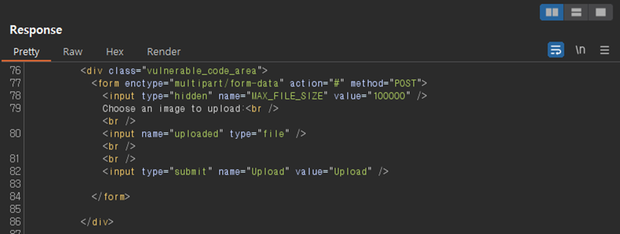 μΉ μ·¨μ½μ λΆμμμ Vulnerability: File Upload high levelμ μ·¨μ½μ μ΄ μλ€κ³ κ²°λ‘ μ λ΄λ¦΄ μ μλ€. νμ§λ§ μ¬κΈ°μ μ λ‘λν μ΄λ―Έμ§ μΉ μμ μ€νν μ μλ λ°©λ²μ΄ νκ°μ§ μλ€. λ°λ‘ LFI μ·¨μ½μ μ μ΄μ©νλ κ²μ΄λ€. μ΄ κ²½μ°μλ LFI μ·¨μ½μ μ΄λ―λ‘ Vulnerability: File Upload high levelμ ν΄λΉνλ νμΌ μ λ‘λ μ·¨μ½μ μ΄λΌκ³ λ³Ό μλ μλ€.