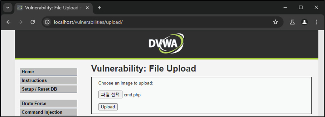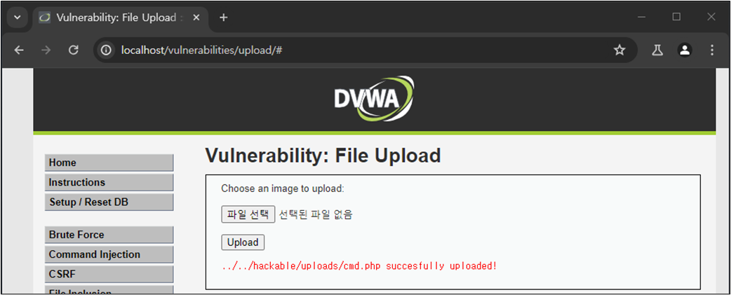 μ λ‘λ νκ³ λλ©΄ Low λ 벨과 κ°μ΄ μ λ‘λ νμΌμ κ²½λ‘κ° λμ€κΈ° λλ¬Έμ μ΄λ₯Ό κ·Έλλ‘ URLμ μ λ ₯νκ³ cmd λͺ λ Ήμ΄λ₯Ό μ λ ₯ν΄μ£Όλ©΄ λλ€.