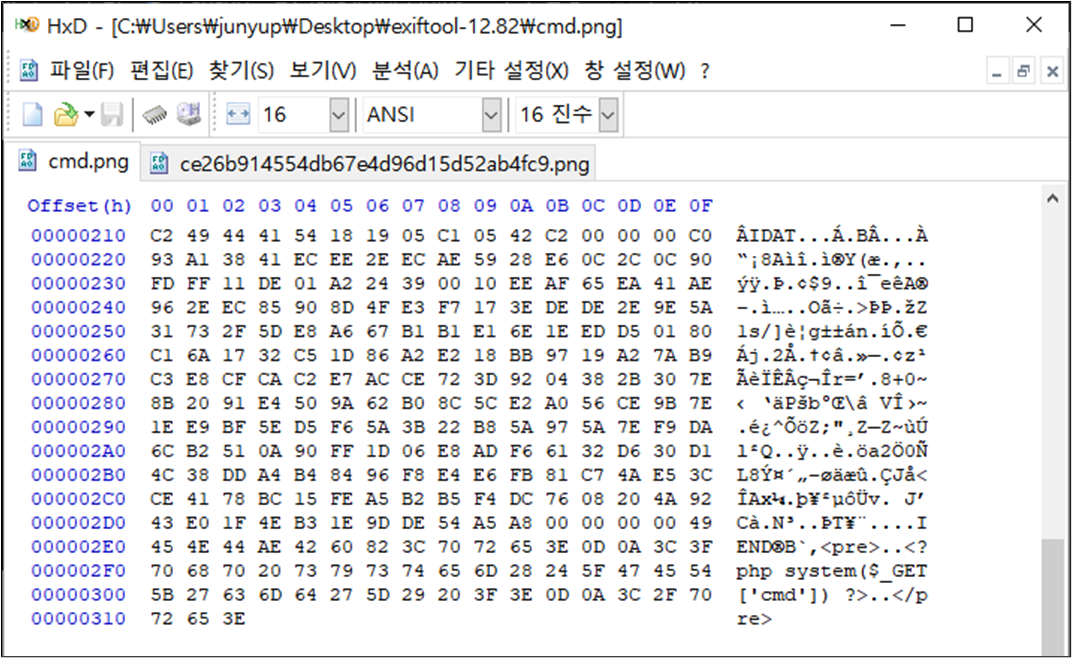 cmd.php νμΌμ cmd.pngλ‘ νμ₯μλ§ λ³κ²½ν κ²½μ°, νμ₯μλ pngμ΄μ§λ§ λ΄μ©μ΄ νλ¬ΈνμΌμ΄κΈ° λλ¬Έμ μ€μ μ΄λ―Έμ§κ° μλλ―λ‘ getimagesize()μ λ°νκ°μ΄ FALSEμ΄κΈ° λλ¬Έμ λ€μκ³Ό κ°μ΄ κ±°λΆλλ€.