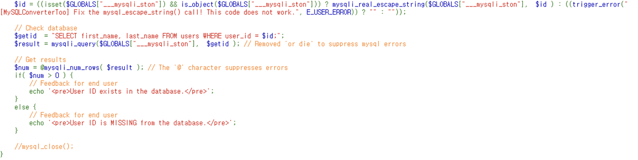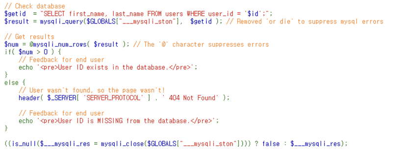 Medium ๋ ๋ฒจ์์๋ ์์์ ํ์ธํ๋ฏ์ด mysqli_real_escape_sting์ ์ด์ฉํ๊ณ ์๊ธฐ ๋๋ฌธ์ ' ๊ฐ ์ธ์๋์ง ์๋๋ค. ๊ทธ๋ฌ๋ฏ๋ก LIMIT์ ์ถ๊ฐ์ ์ผ๋ก ์ด์ฉํ๋ค.