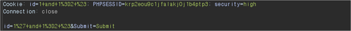 ์ฐ์ ๊ณต๊ฒฉ ์ฟผ๋ฆฌ๋ฅผ ์์ฑํ๊ณ SQL ๊ตฌ๋ฌธ์ด ๋ค์ด๊ฐ ์๋ฆฌ์ ์ํ๋ SQL ๊ตฌ๋ฌธ์ ์ฝ์ ํ๋๋ก ํ๋ค.