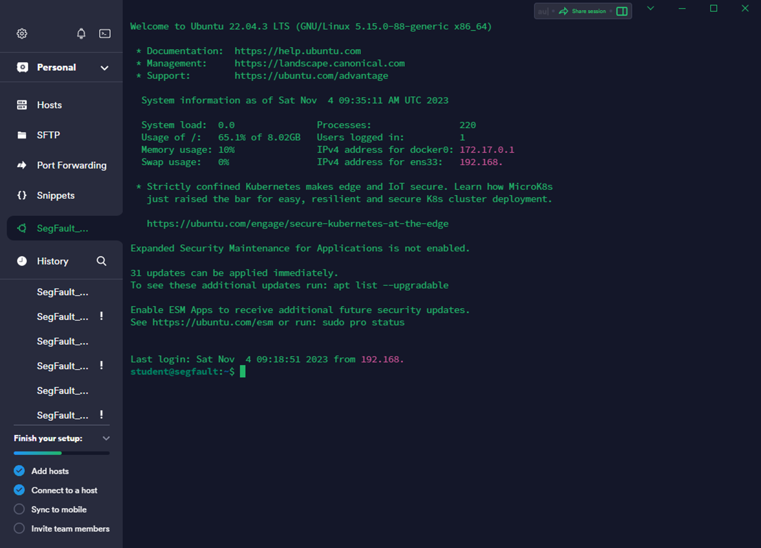 - ์คํฐ๋์์ ์ ๊ณต๋ ๊ฐ์๋จธ์ SegFault_WEBdev.ova ์ ์ด์ฉ