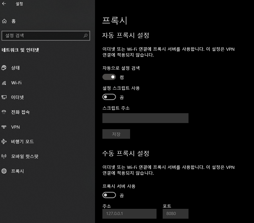 - ์๋ ํ๋ก์ ์ค์ (ํ๋ก์ ์๋ฒ ์ฌ์ฉ)