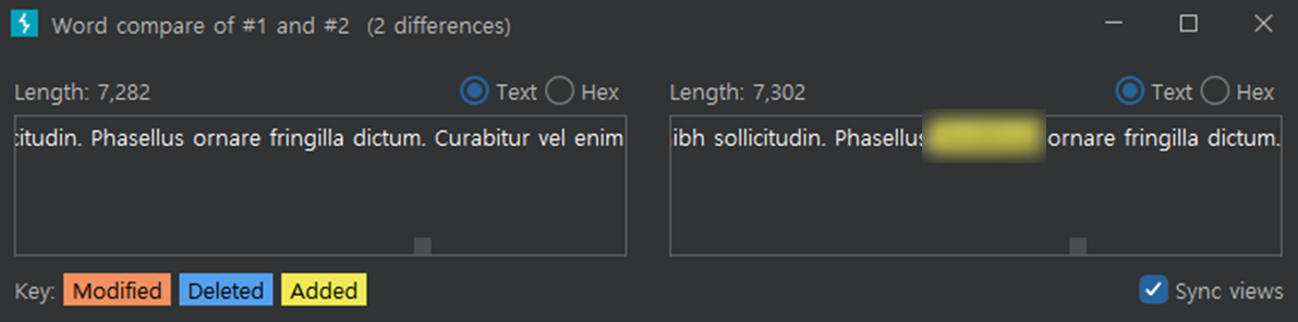 7. Sync views๋ฅผ ์ ํํ๊ณ ๊ธ์ ํ์ธํ๋ฉด, ์๋ก ๋ค๋ฅธ๋ถ๋ถ์ด ํ์๋์ด ๋ํ๋๋ค.