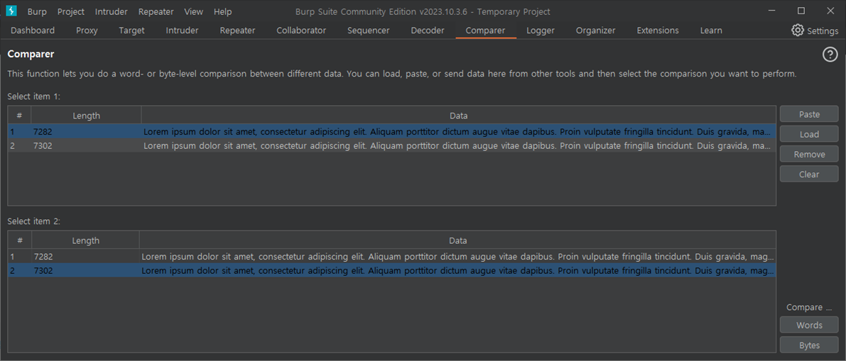 - ๊ธธ์ด๊ฐ ์๋ก ๋ค๋ฅธ ์ค๊ธ ํ์(text)๋ฅผ ํ์ธ ๊ฐ๋ฅ : Comparer๋ฅผ ์จ์ผ๊ฒ ๊ตฌ๋!! ๋ฅผ ์๊ฐํ ์ ์๋ค.