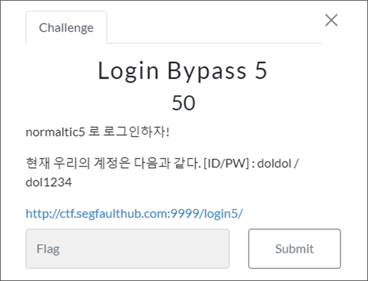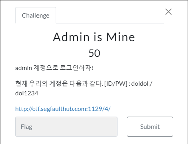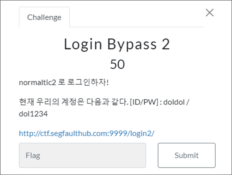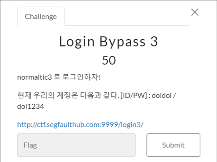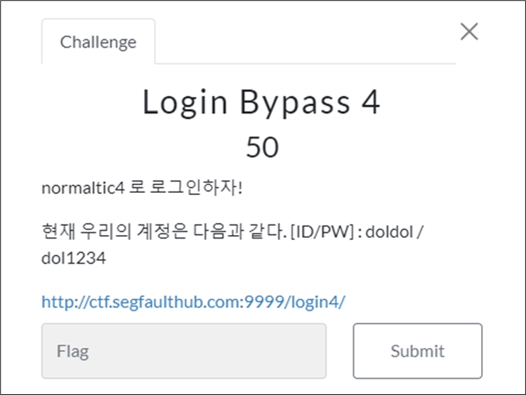 [SegFault] Authentication Bypass (Login) Secret Login. ๊ด๋ฆฌ์ ๊ณ์ ์ผ๋ก ๋ก๊ทธ์ธํ์! ๊ทธ๋ฐ๋ฐ... ๊ด๋ฆฌ์ ๊ณ์ ์ด ๋ญ์ง ๋ชจ๋ฅธ๋ค..!? ๋ฌธ์ ํ์ ์์ ํ์ด์ง์ ์ ์ํ๋ฉด ์๋์ ๊ฐ์ ํ๋ฉด์ด ๋์จ๋ค. ์๊ณ ์๋ ๊ณ์ : [ID/PW] : doldol / dol1234 ๋ก๊ทธ์ธ ๊ณผ์ ์ ๊ตฌ์กฐ๋ฅผ ์๊ธฐ ์ํด, ์๊ณ ์๋ ์ ๋ณด๋ก ๋ก๊ทธ์ธ ํด๋ณธ๋ค. ์๊ฐ ๊ณผ์ 1. ๋ก๊ทธ์ธ ํ์์ ๋ ํน๋ณํ ์ ์ด ๋ณด์ด์ง ์๋๋ค. 2. SQL Injection์ด ๊ฐ๋ฅํ๊ฐ? Yes -> doldol'and'1'='1 / dol1234 ๋ก ๋ก๊ทธ์ธ ์๋ : ์ฑ๊ณต 3. 'or'1'='1 ๋ก ์๋ ๊ด๋ฆฌ์ ๊ณ์ ์ ๋ํ ์ ๋ณด๊ฐ ์๋ค. ๊ทธ๋ฌ๋ฏ๋ก ์ ์ฒด ๋ฐ์ดํฐ๋ฅผ ์กฐํํ๋ ๊ฒ์ ๋ชฉํ๋ก ํ์. 3-1. doldol'or'1'..